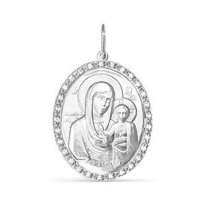 Икона Б.М. Казанская из серебра с фианитами