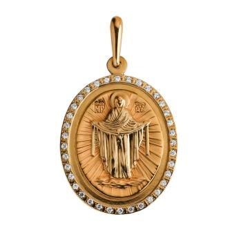 Икона Покрова Присв.Богородицы из золота с фианитами