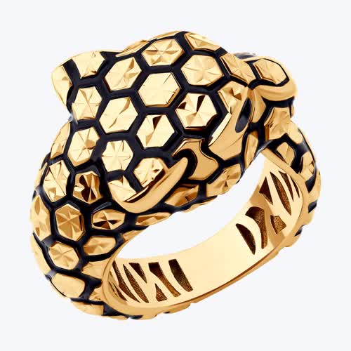 Кольцо Кошка из золота с эмалью