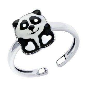 Кольцо Панда из серебра с эмалью