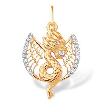 Подвеска из золота Дракон из золота с фианитами