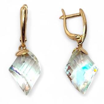 Серьги из золота с радужным кварцем