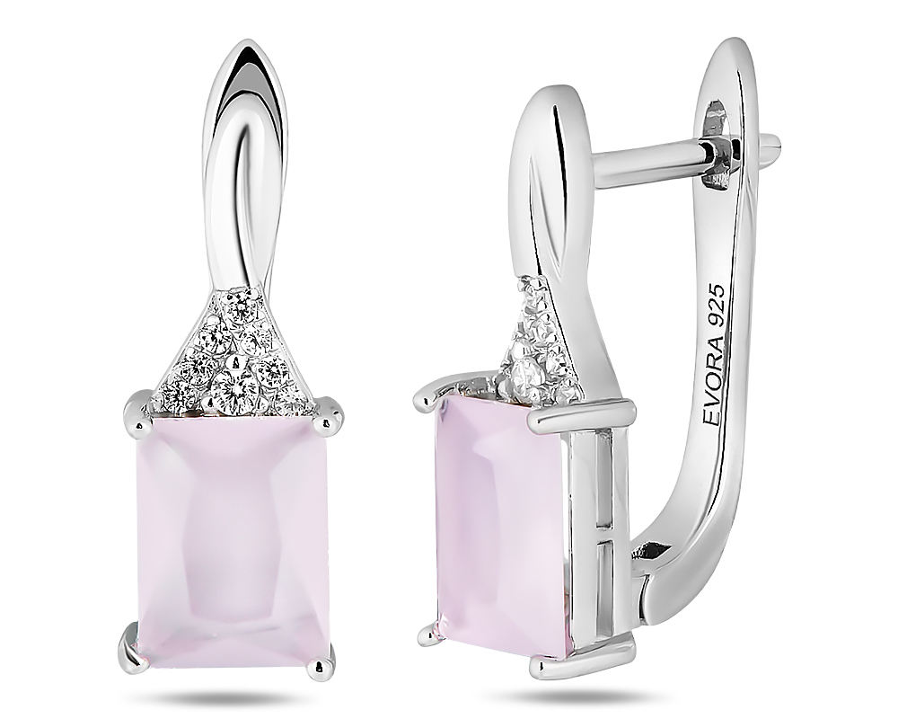 Серьги из серебра с розовым кварцем
