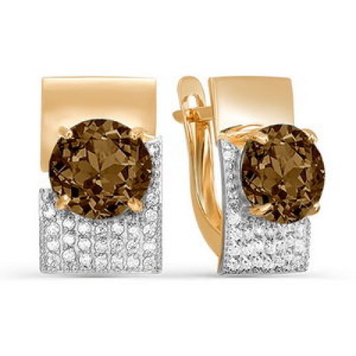 Серьги из золота с раух-топазами