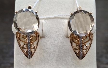 Серьги из золота с раух-топазами