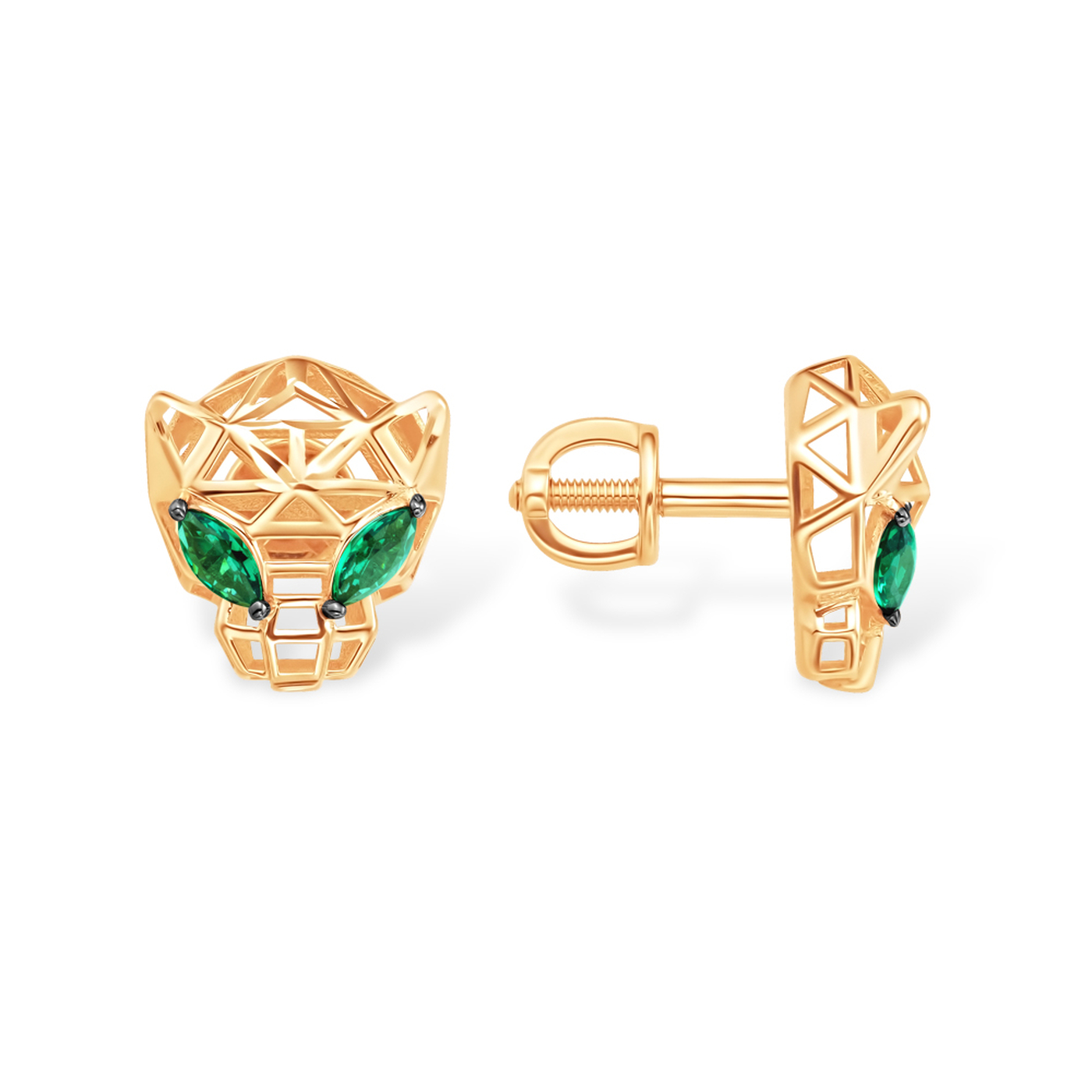 Серьги Кошки из золота с фианитами