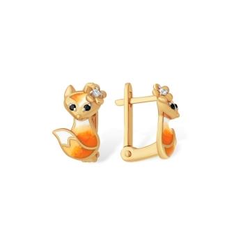 Серьги Лисички из золота с эмалью