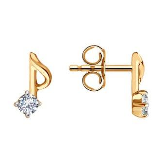 Серьги Ноты из золота с фианитами