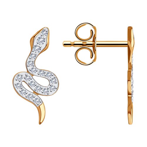 Серьги Змеи из золота с фианитами