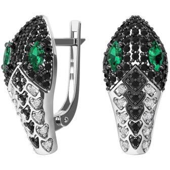 Серьги Змеи из серебра с фианитами